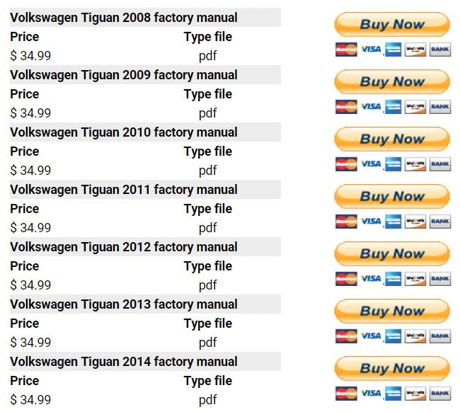 Volkswagen Tiguan 2008 2009 2010 2011 2012 2013 2014 repair manual