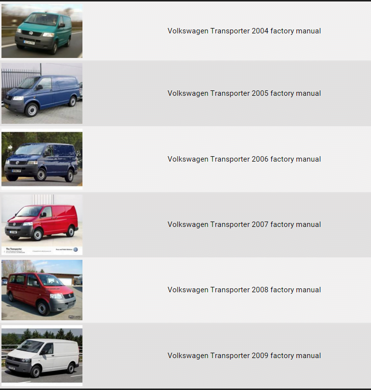 Volkswagen Transporter 2004 2005 2006 2007 2008 2009 repair manual